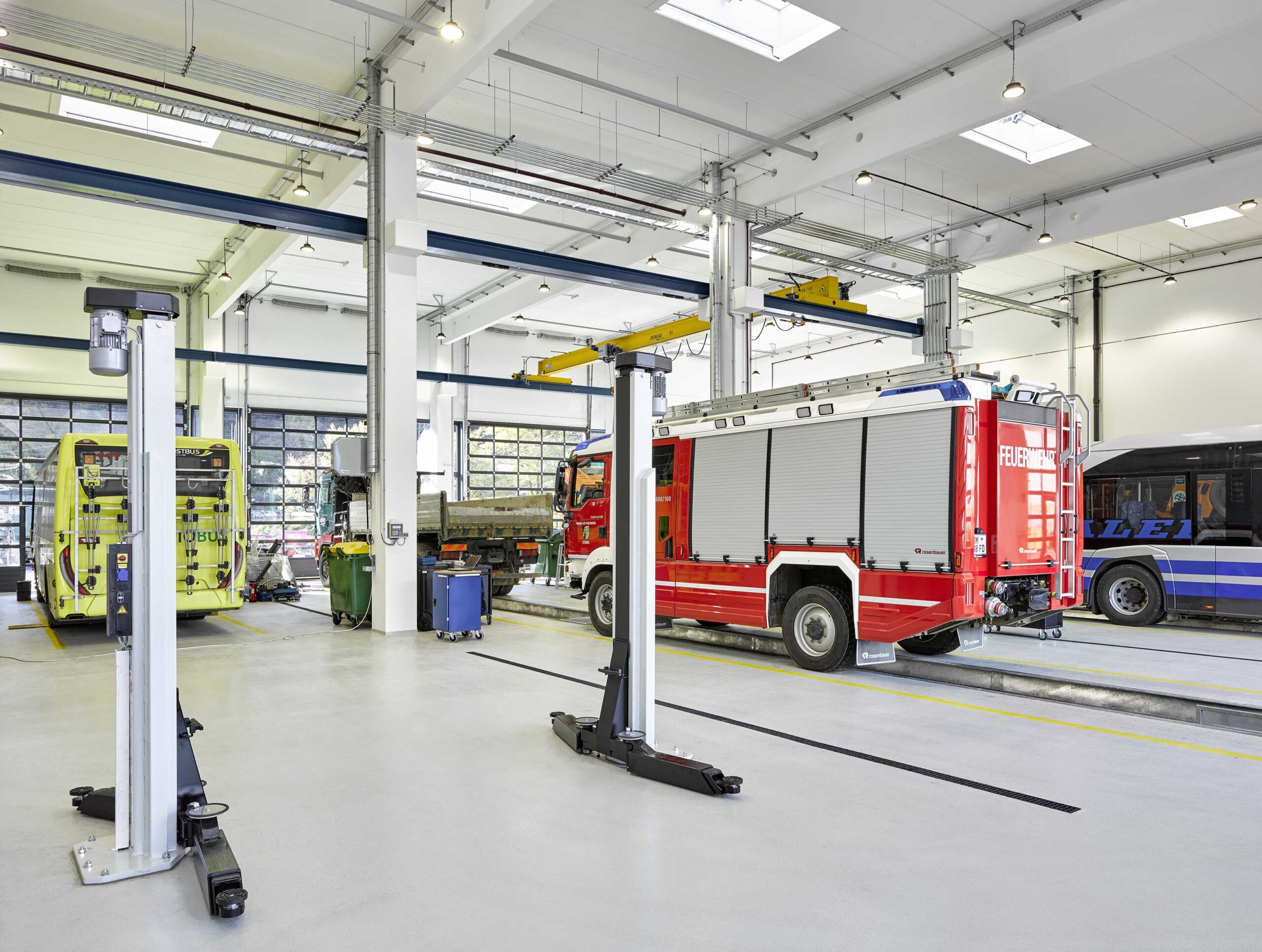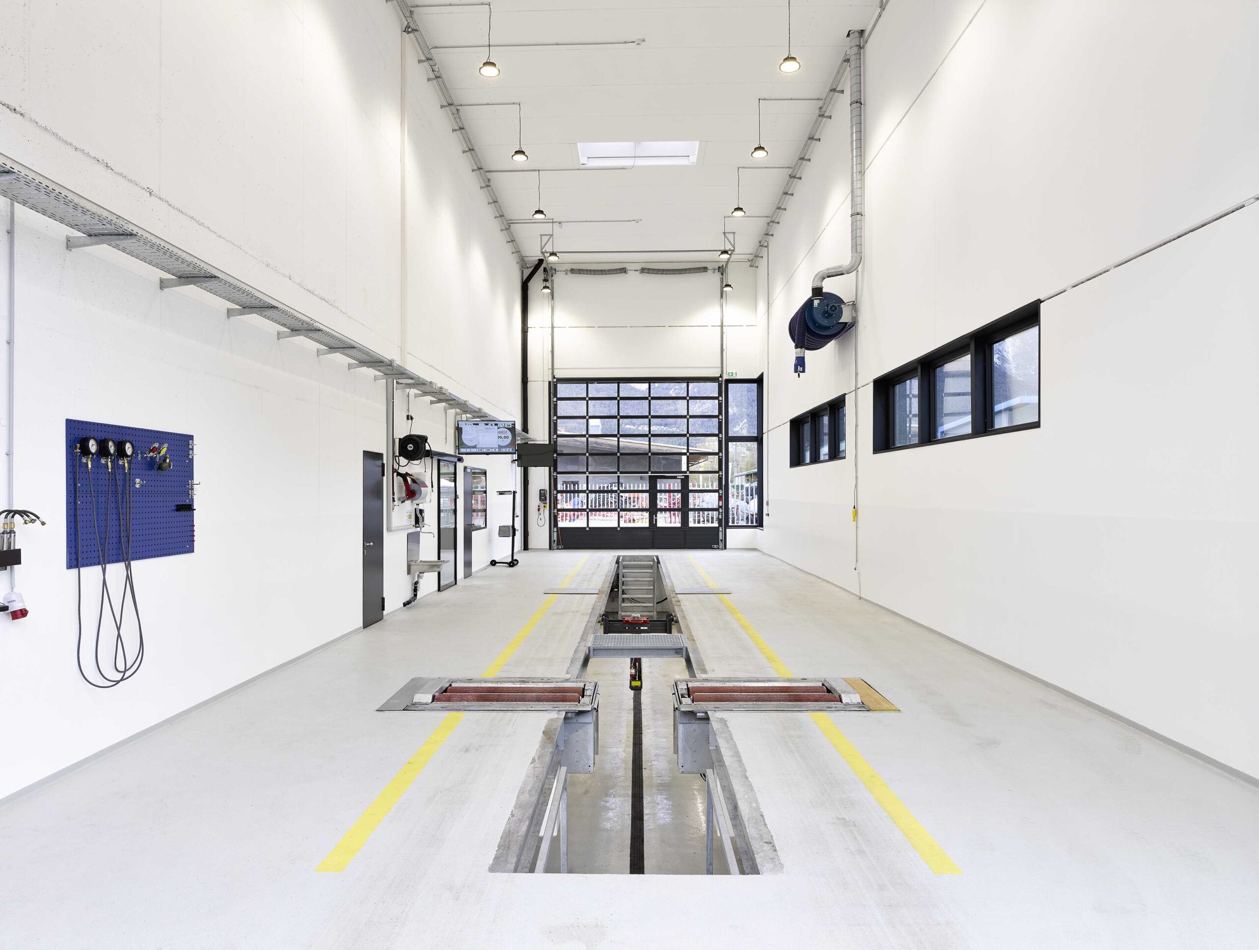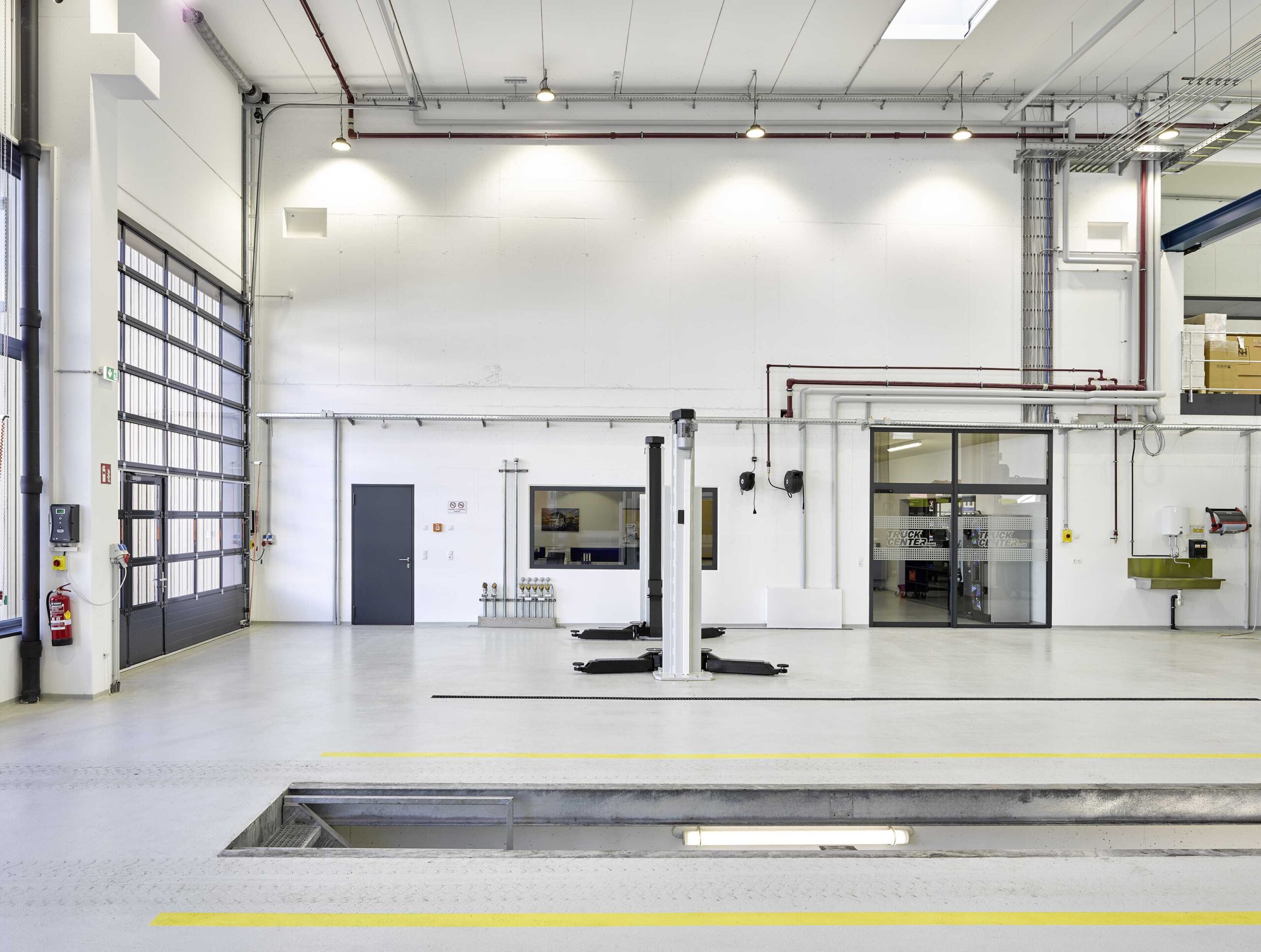 Die große Herausforderung war das Innenleben der Werkstatt mit sämtlichen, mir bis dato fremden, Prüfständen, Bühnen, Rüttelplatten, Gruben, Ölversorgungen, …., die perfekt eingebaut werden mussten und deren Anordnung für einwandfreie Abläufe sorgen musste.
