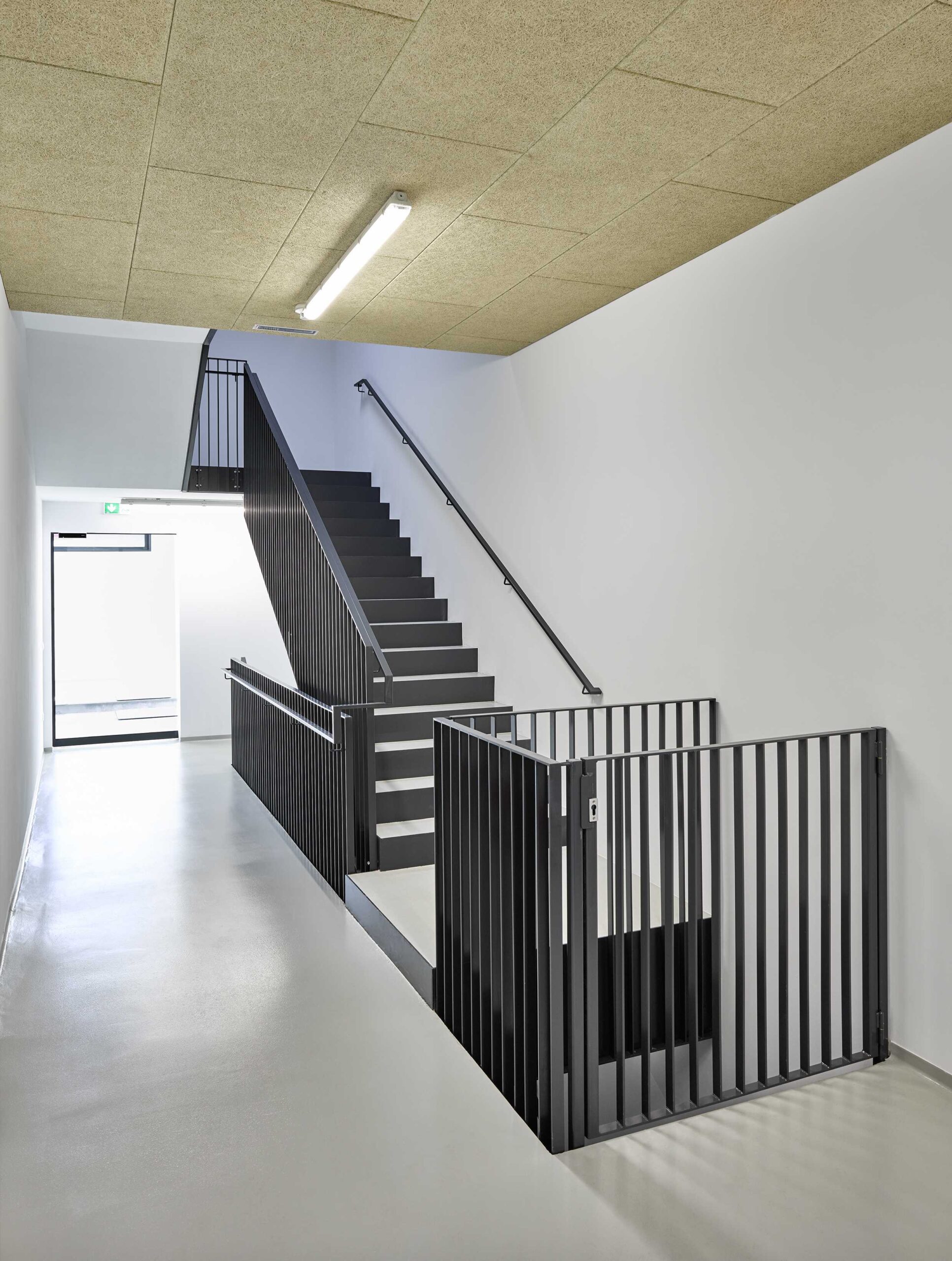 Entstanden ist ein Gebäude mit funktionellen, hellen, untereinander verknüpften Arbeitsbereichen in einer Hülle aus Betonfertigteilen, die durch ihre gezielten Elementteilungen wirkt.