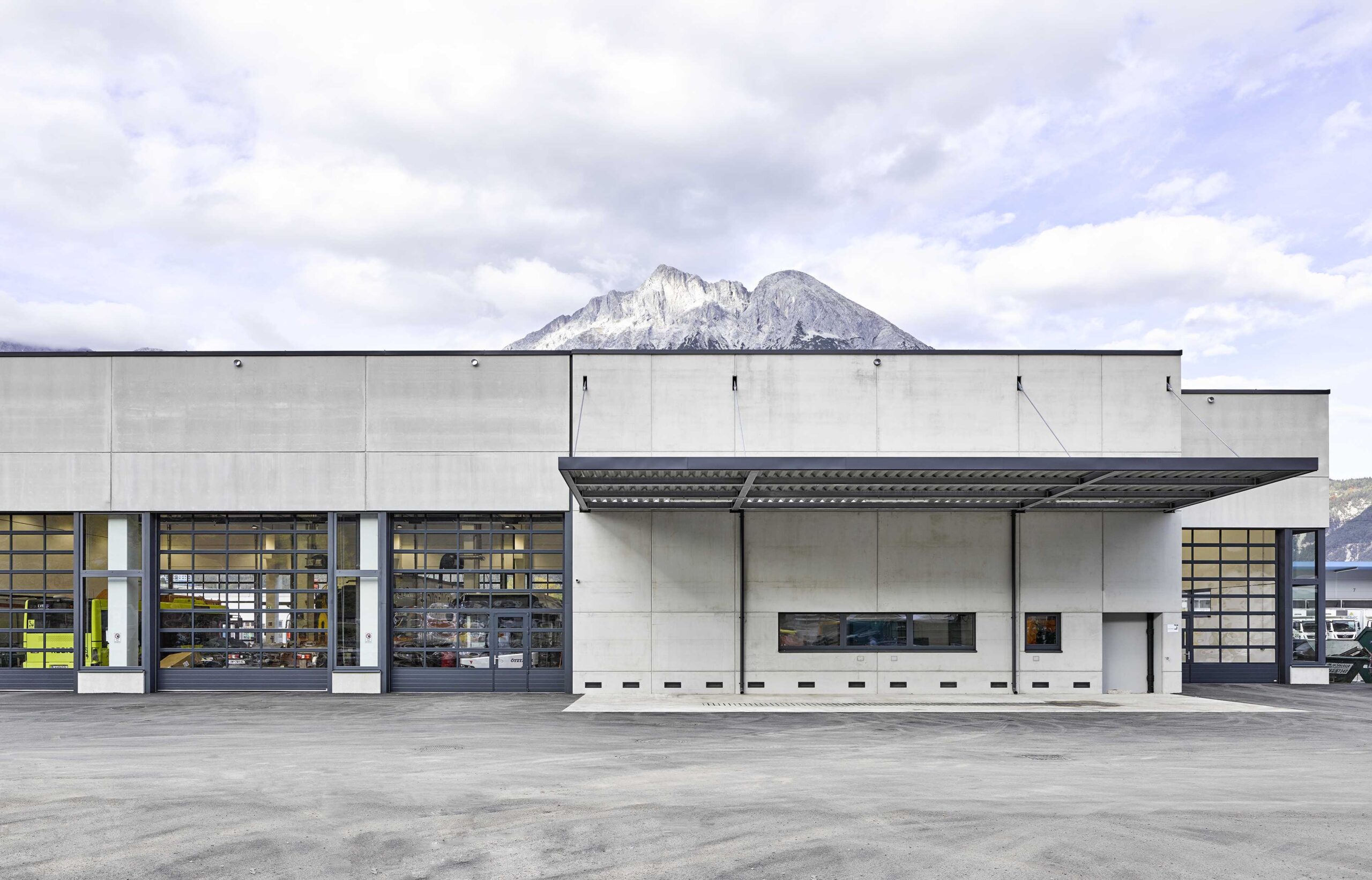 Die Vorgabe für den Entwurf der LKW Werkstätte im Gewerbegebiet von Pfaffenhofen war recht einfach: Bürotrakt, eine Straße für TÜV Überprüfungen, 3 Straßen für Reparaturen.